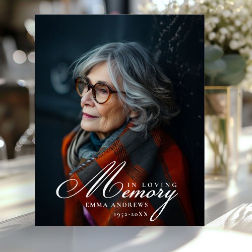 This beautifully designed funeral photo prayer card allows you to create a heartfelt tribute to your loved one. Simply add your favorite photo and customize the text with a meaningful message or scripture. The front of the card features classic, timeless typography to honor their memory, while the back includes a customizable prayer or poem set against a sleek black background. Thoughtfully crafted, this card serves as a cherished keepsake, offering comfort and remembrance for family and friends.